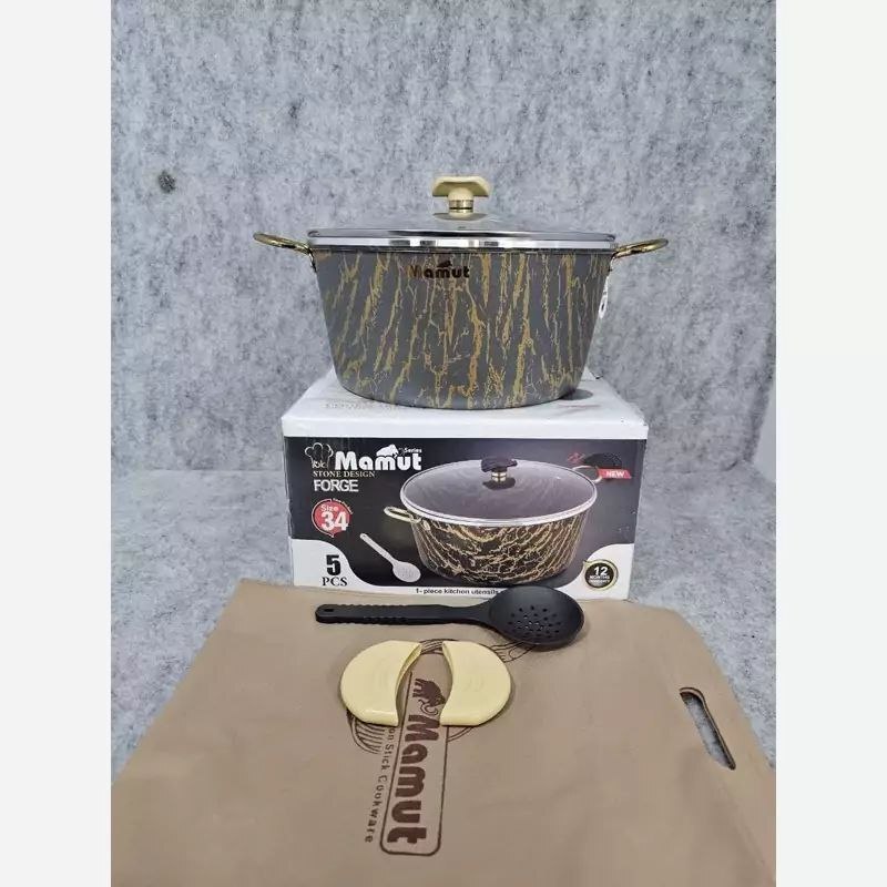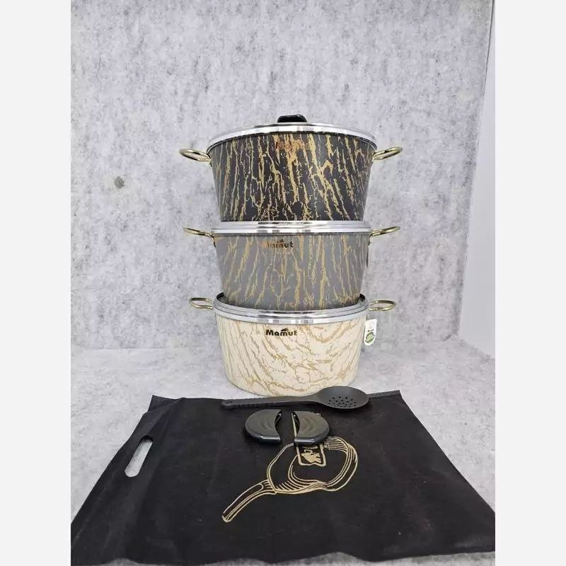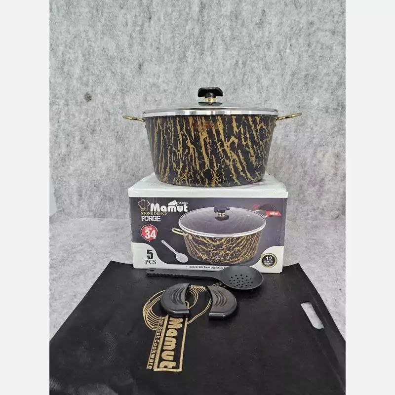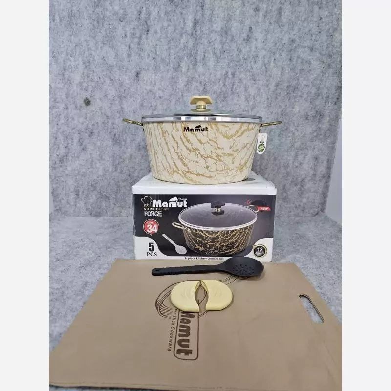 قابلمه سایز 34 ماموت مناسب برای 12 تا 15 نفر هستش که دقیقا سایز بزرگتر سرویس قابلمه 21 پارچه ماموت هست و شما میتونید با اون سرویس ست کنید و پوشش داخل و بیرون گرانیت طرح سنگی درجه یک هستش که نچسب و ضد خشه